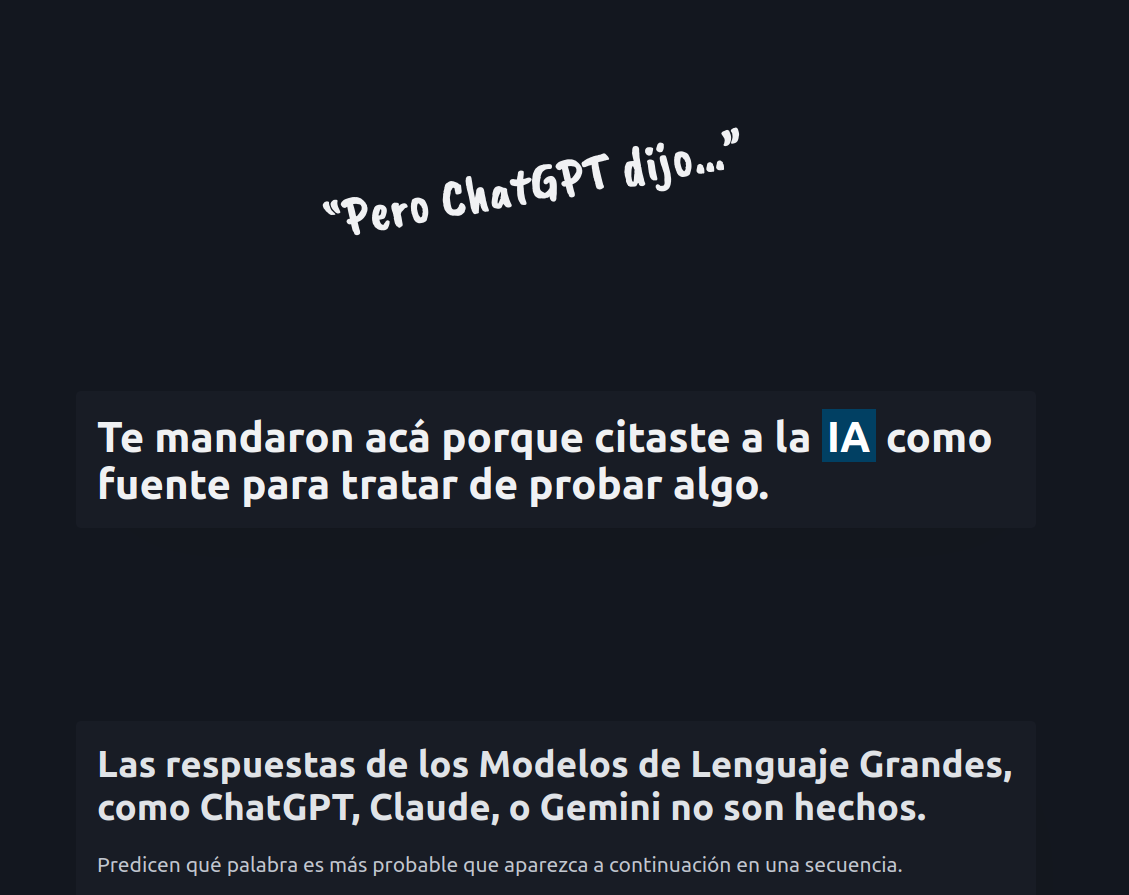 Así que le mandé a Leo Herzog un PR, una colaboración a su proyecto, con la traducción al castellano de su genial explicación. El autor tuvo la amabilidad de incorporar este aporte al proyecto, así que ahora podemos mandarle la versión traducida a quien se ponga a citar a una IA como si fuera un autor prestigioso.